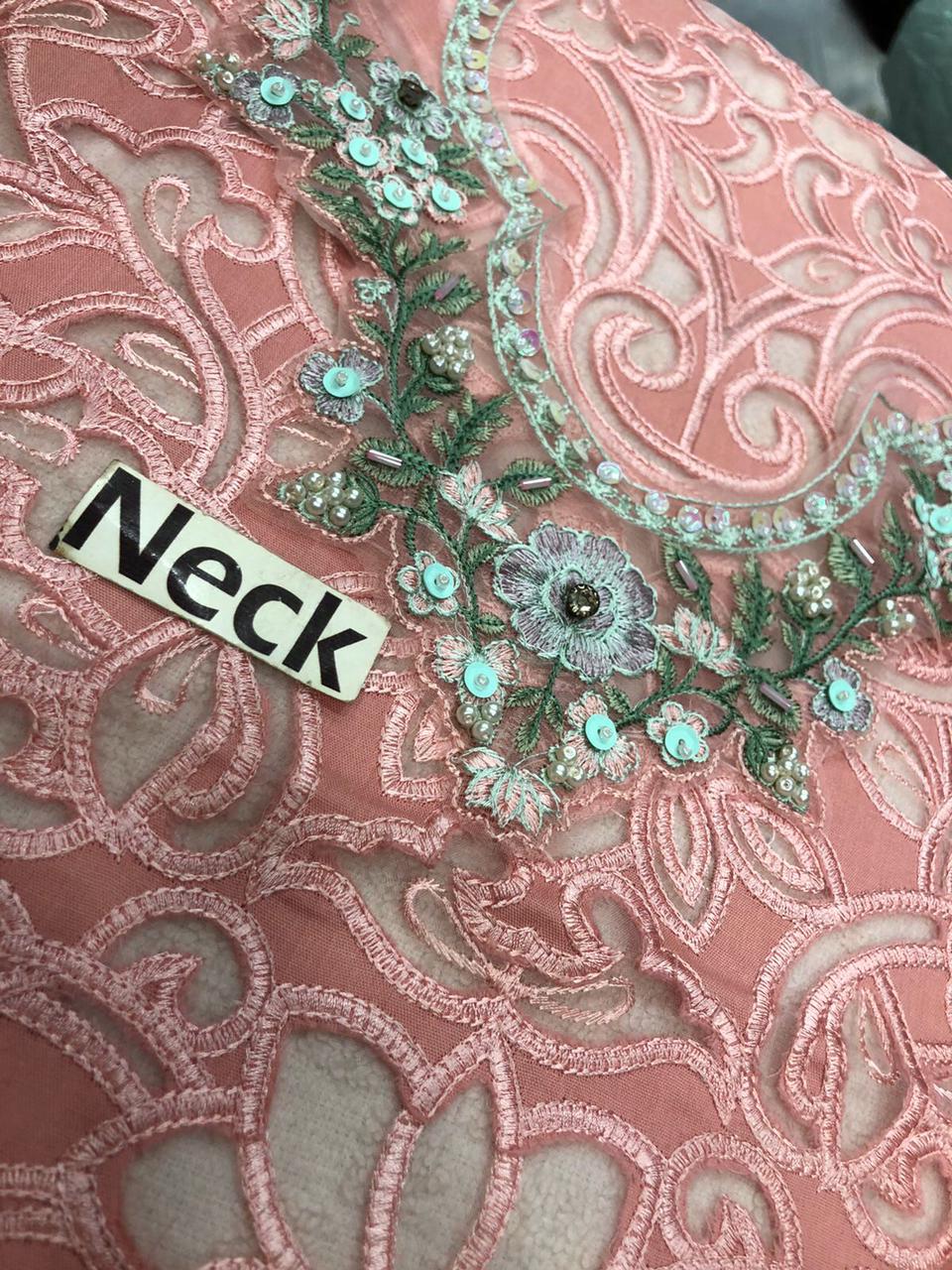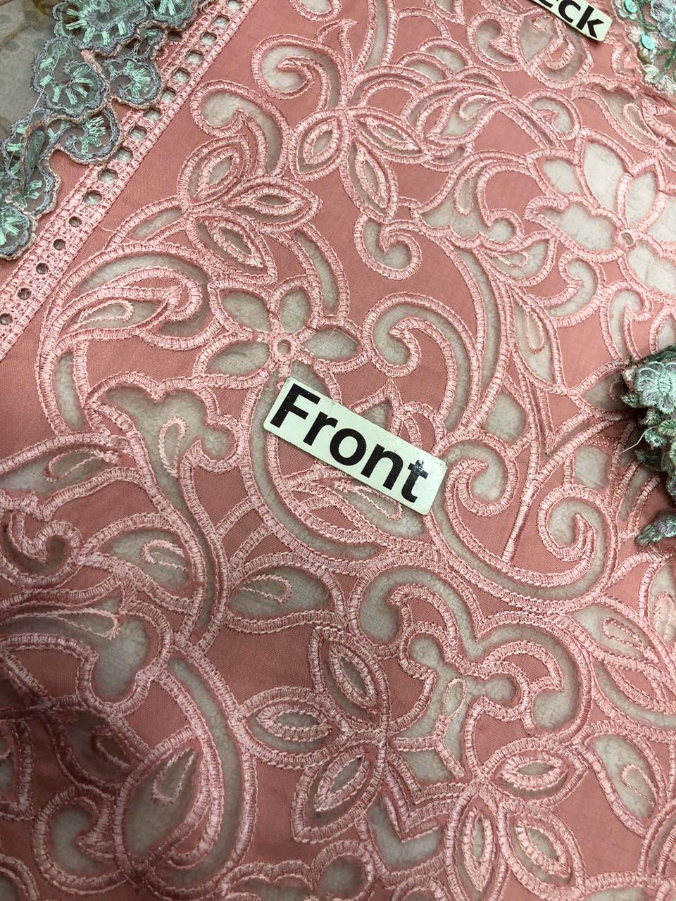 Heavy Embroidered Lawn Sleeves with Embroidered Cut work Sleeves Cuff on fabric