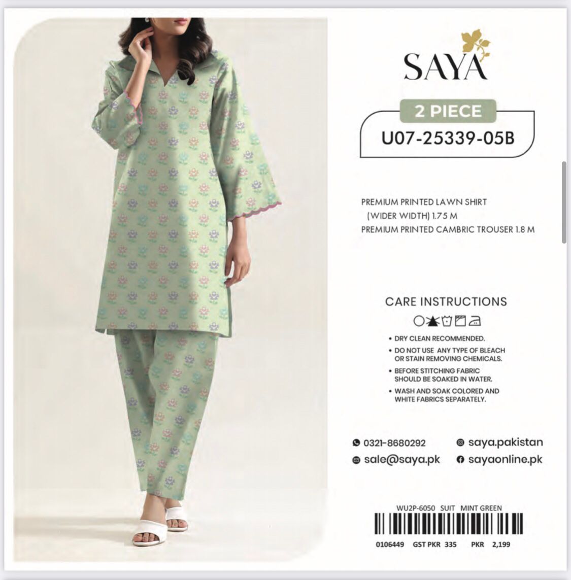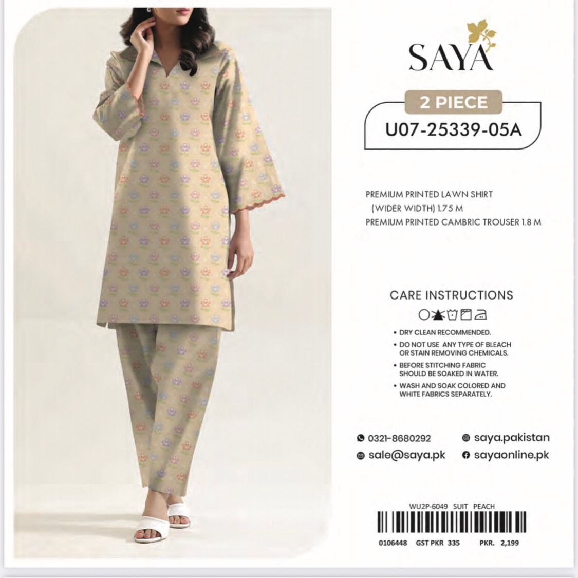 SAYA 2 PC ALLOVER and Shirt Dupatta Digital Printed Lawn 2 Piece Summer Collection