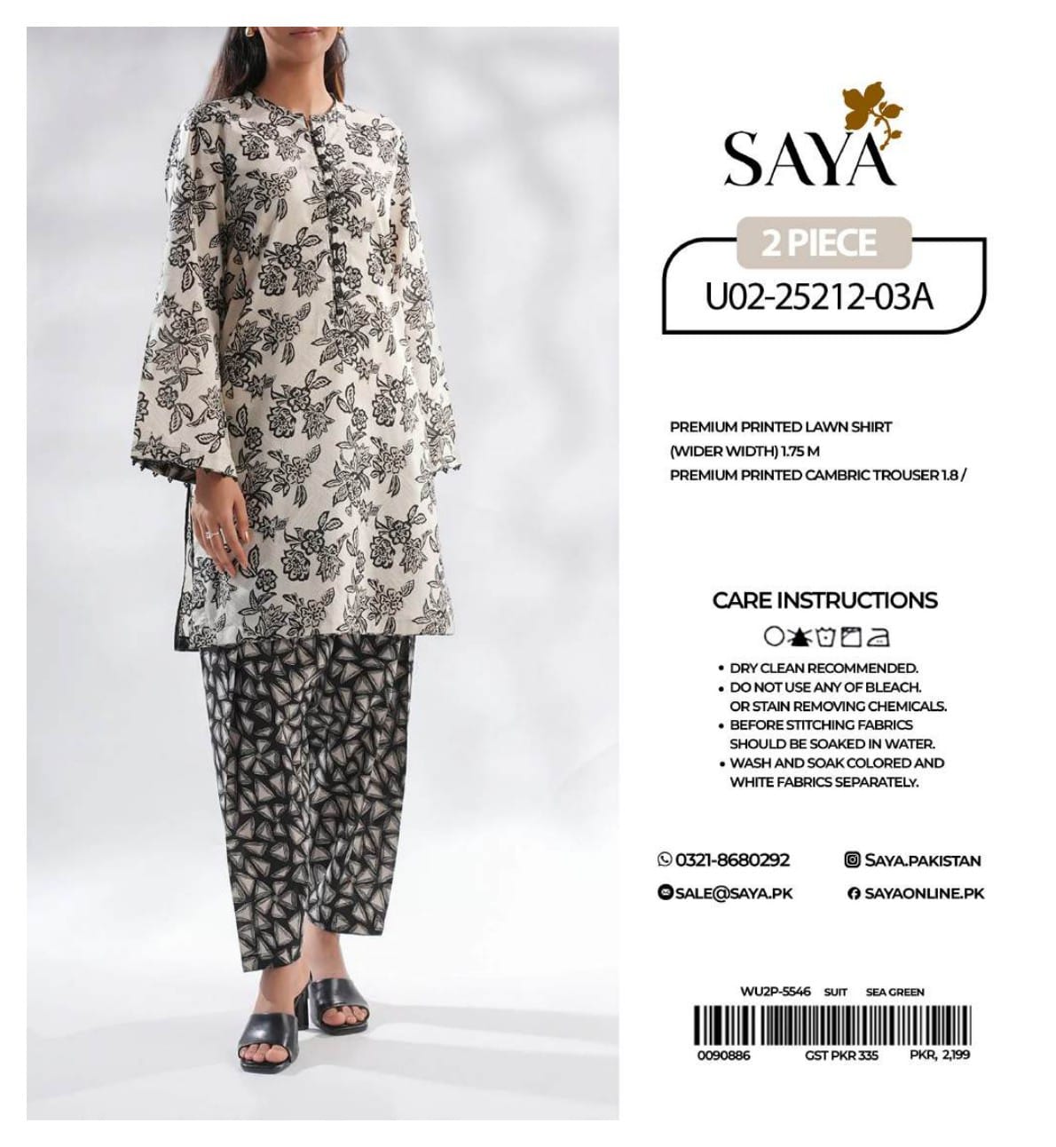 *SAYA UNSTITCH CORD'S SET Luxury Digital Printed LAWN 2 Piece Summer Collection*