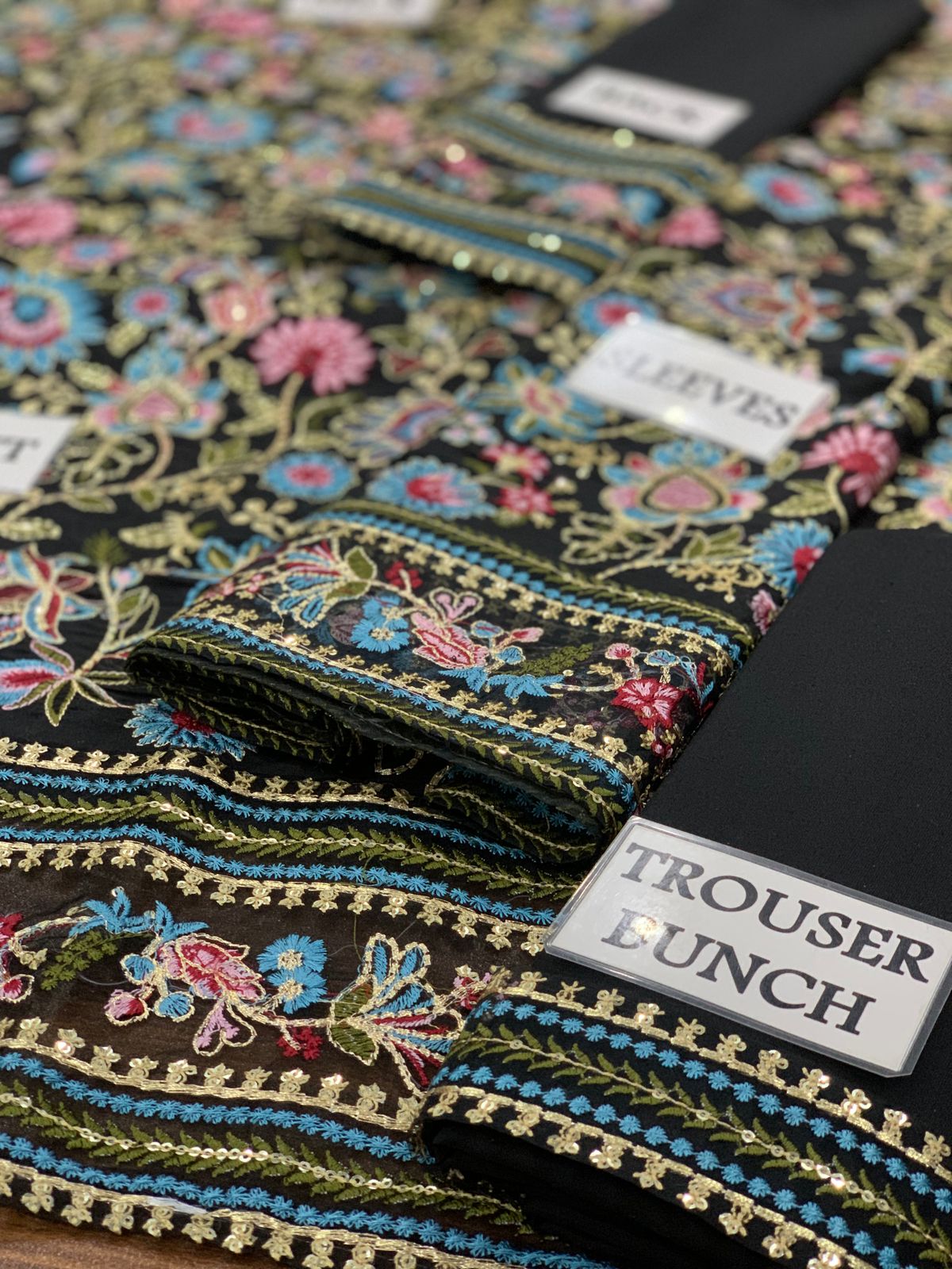 •Heavy Sequence Embroidered sleeves Raw Silk fabric
