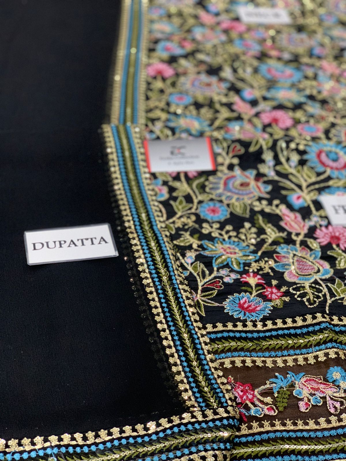 •Embroidered Chiffon Dupatta 4 side Border