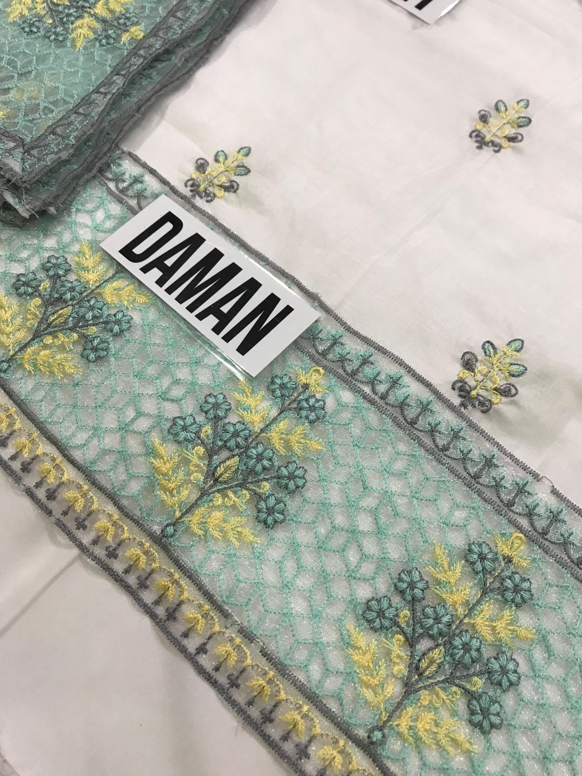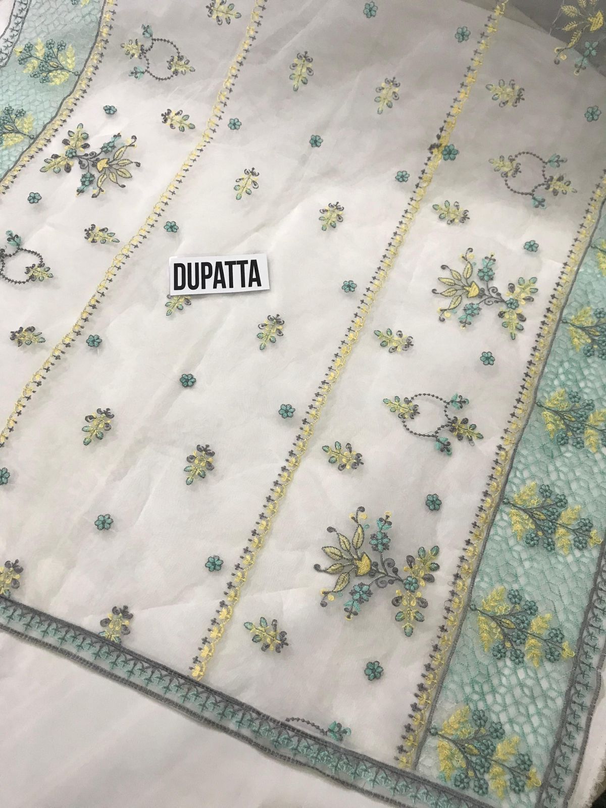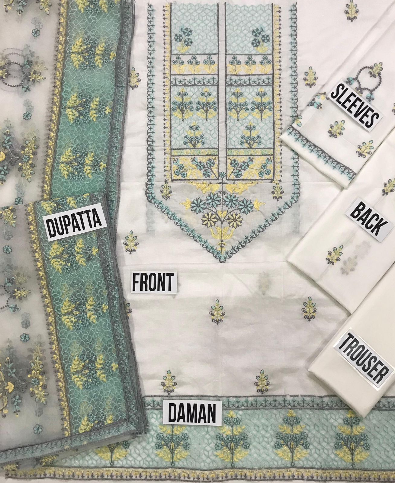 Lawn Fully Heavy Cross Stitch Embroidered Front With Heavy Embroidered Neck And Daman On Organza