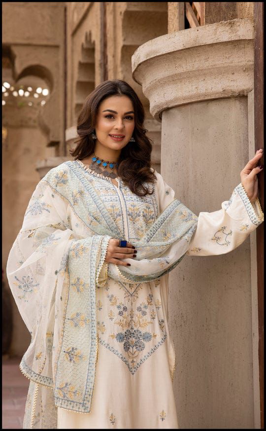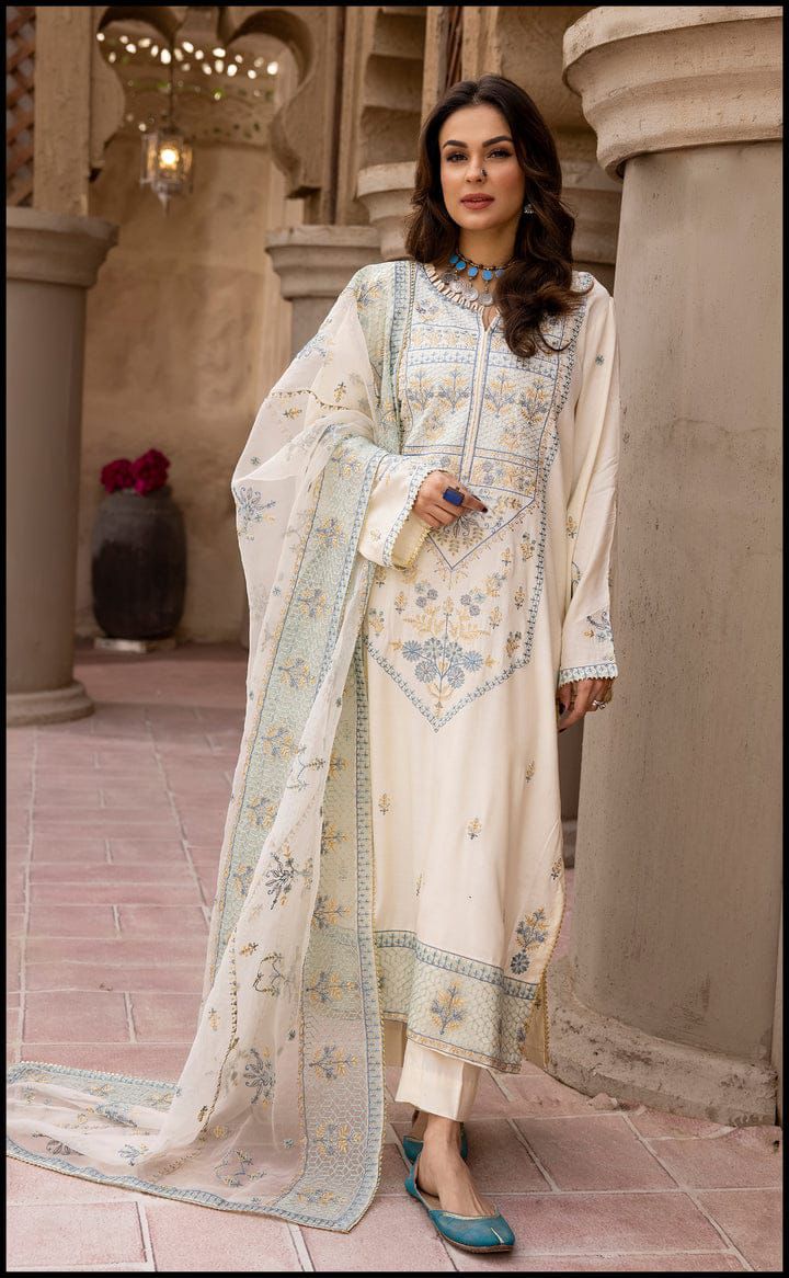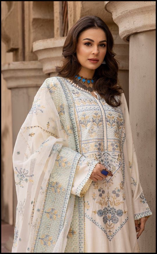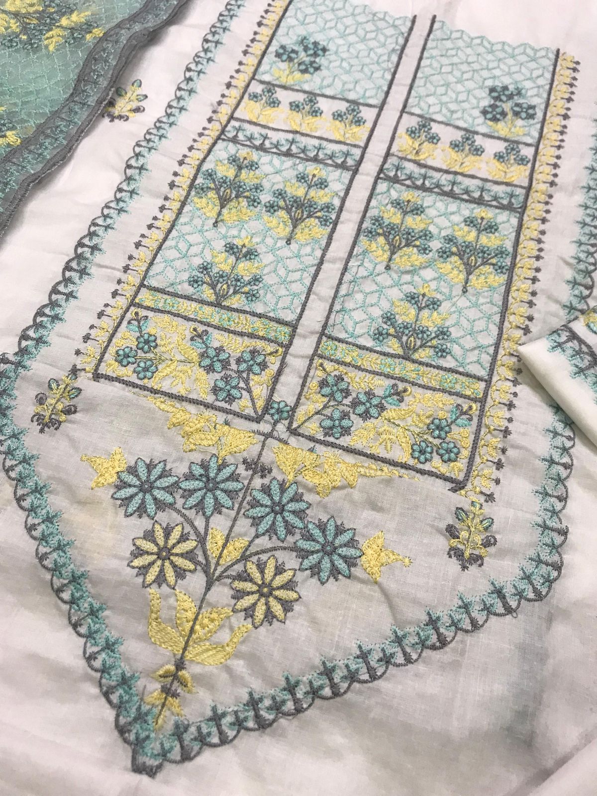 Lawn Fully Heavy Cross Stitch Embroidered Front With Heavy Embroidered Neck And Daman On Organza