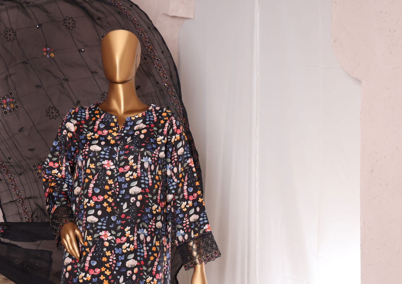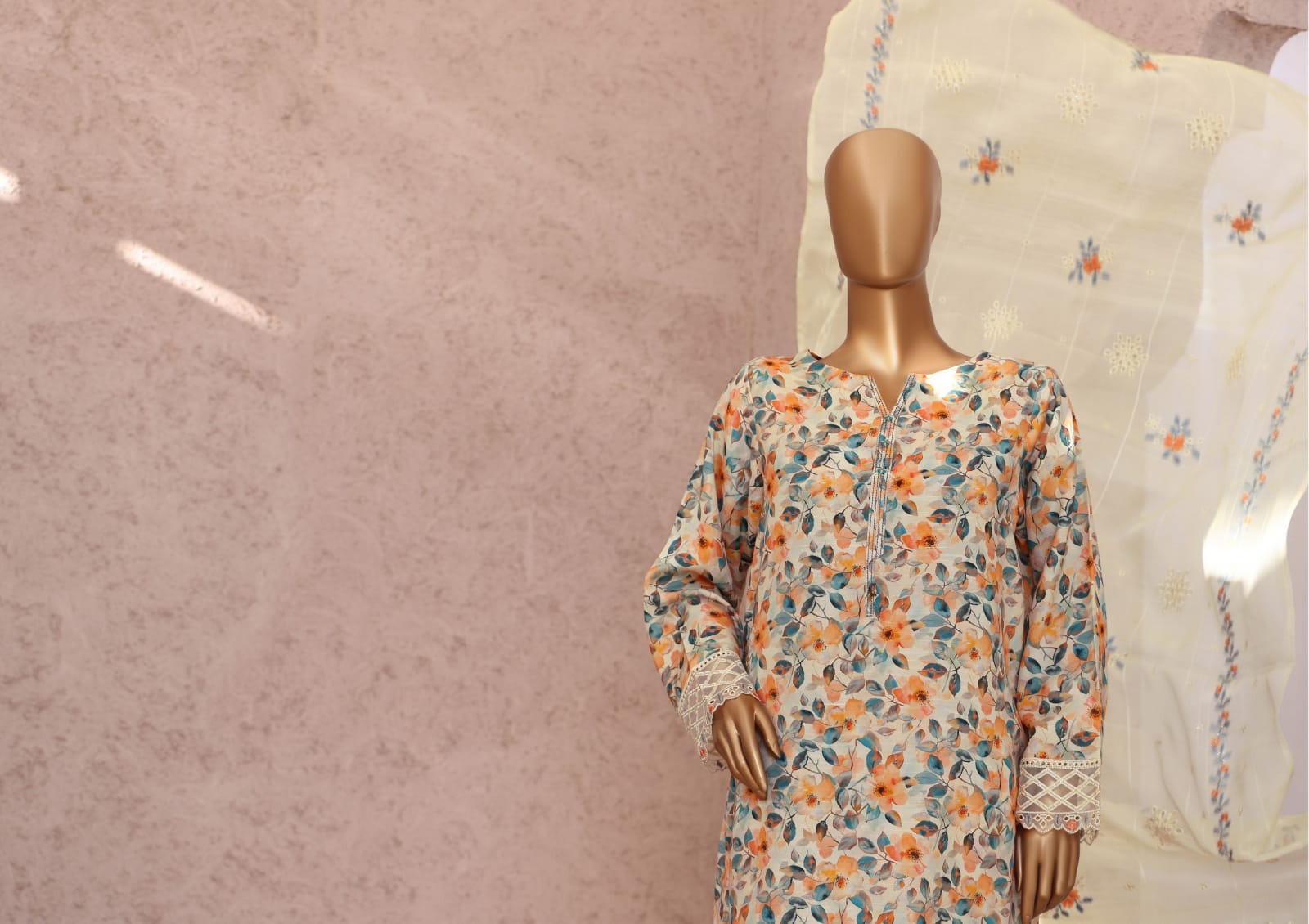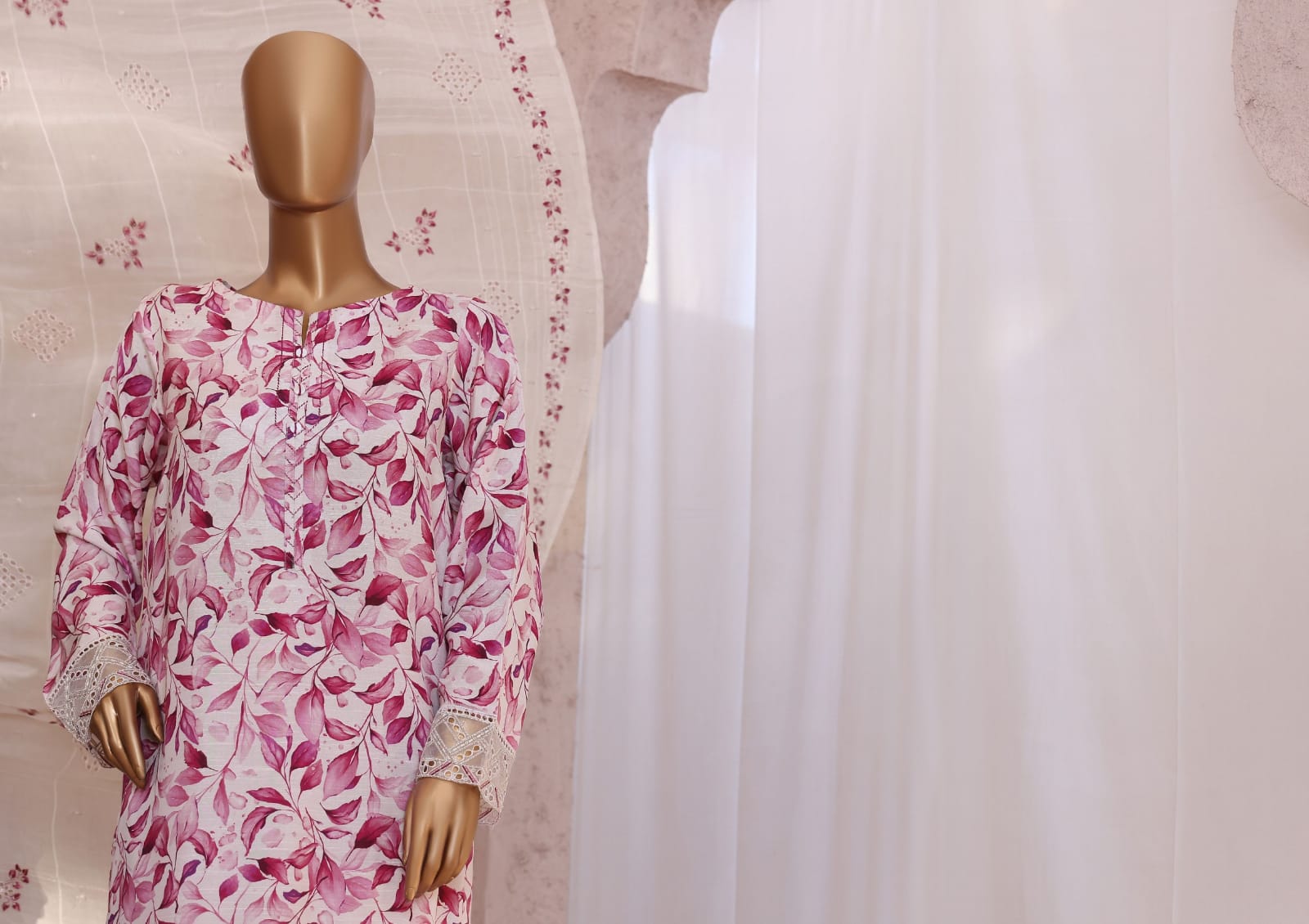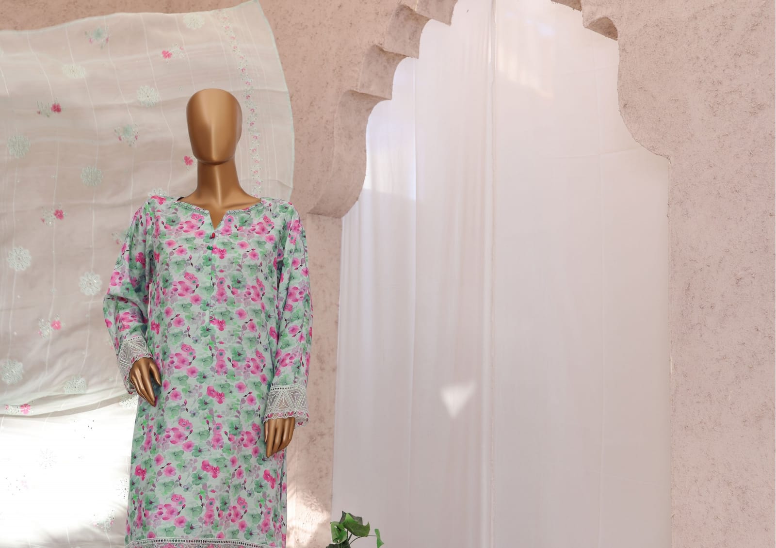 DIGITAL PRINTED RAW SILK EMBROIDERED SHIRT