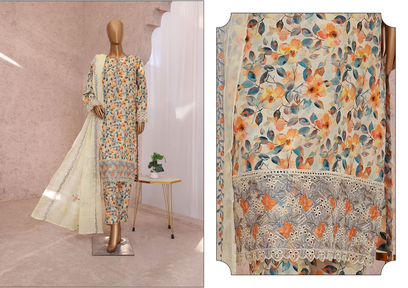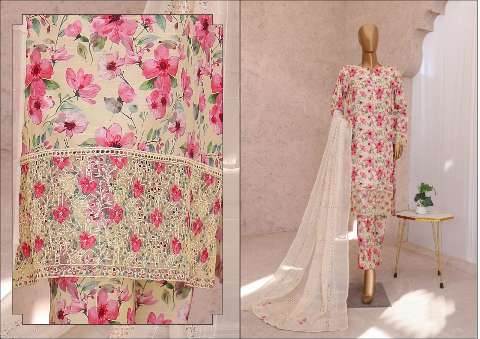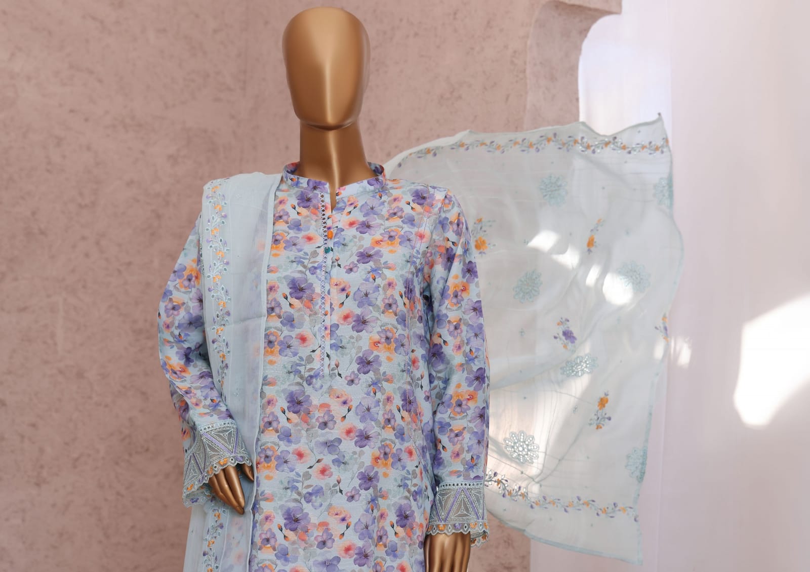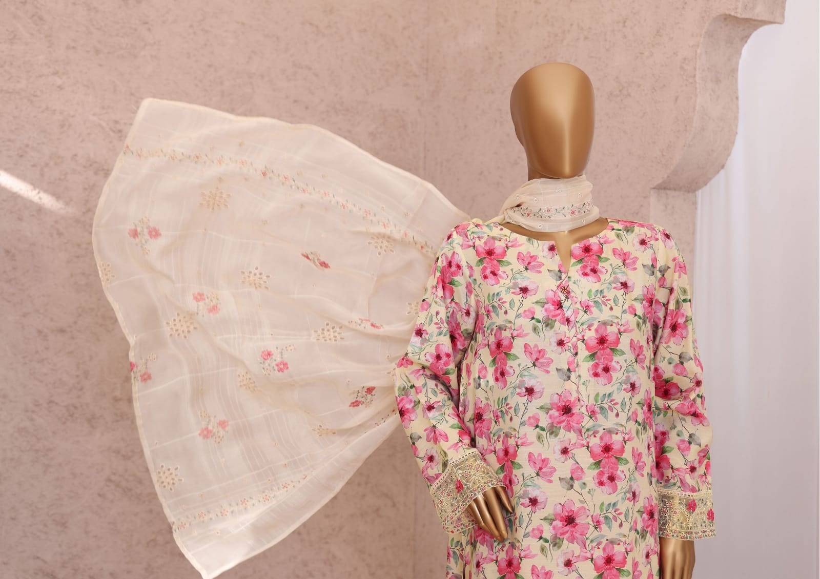 DIGITAL PRINTED RAW SILK EMBROIDERED STROUSER