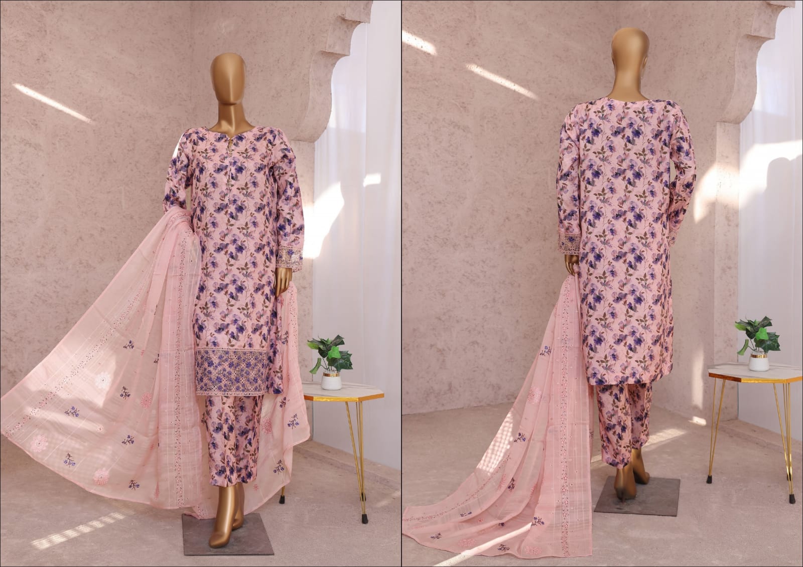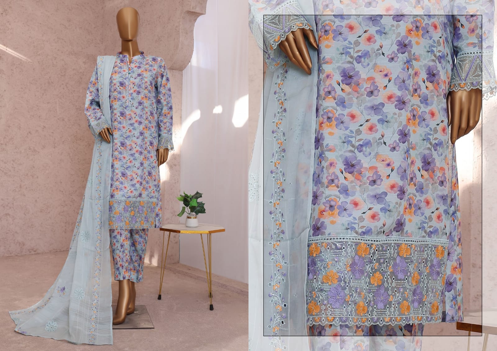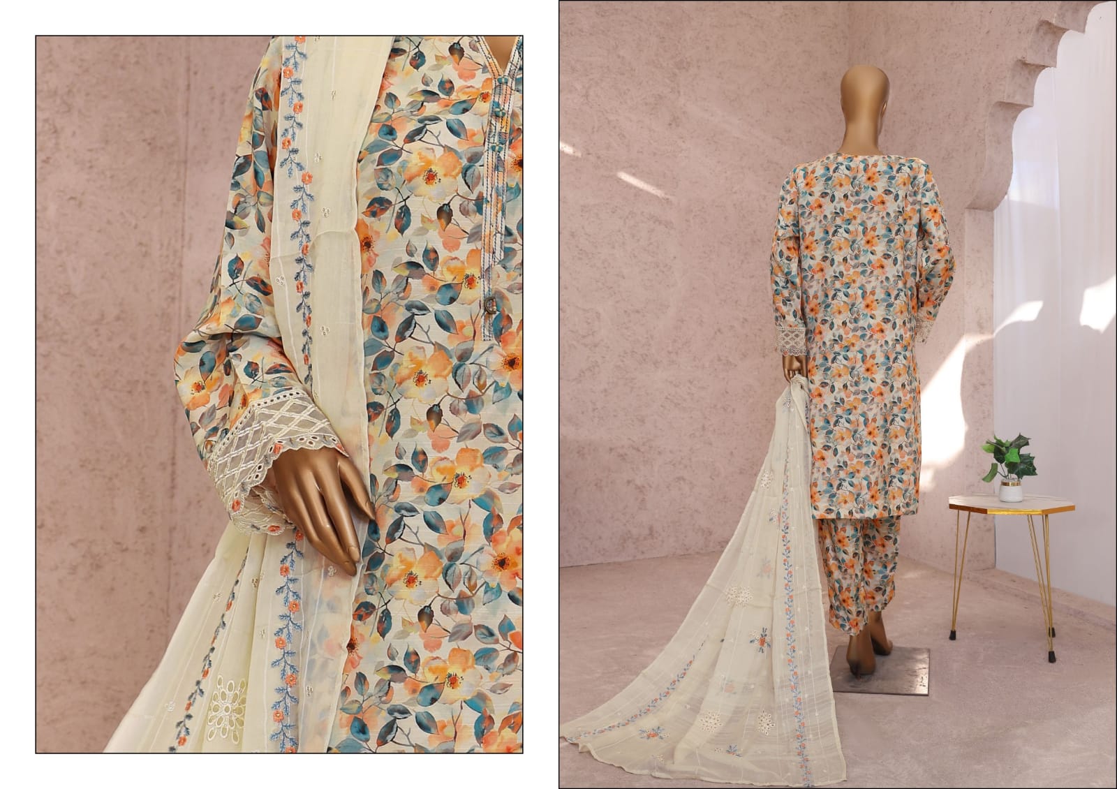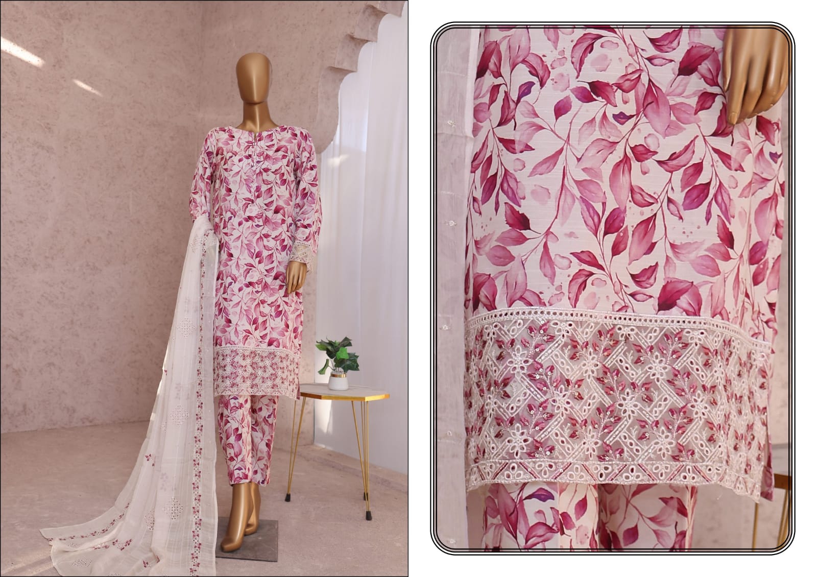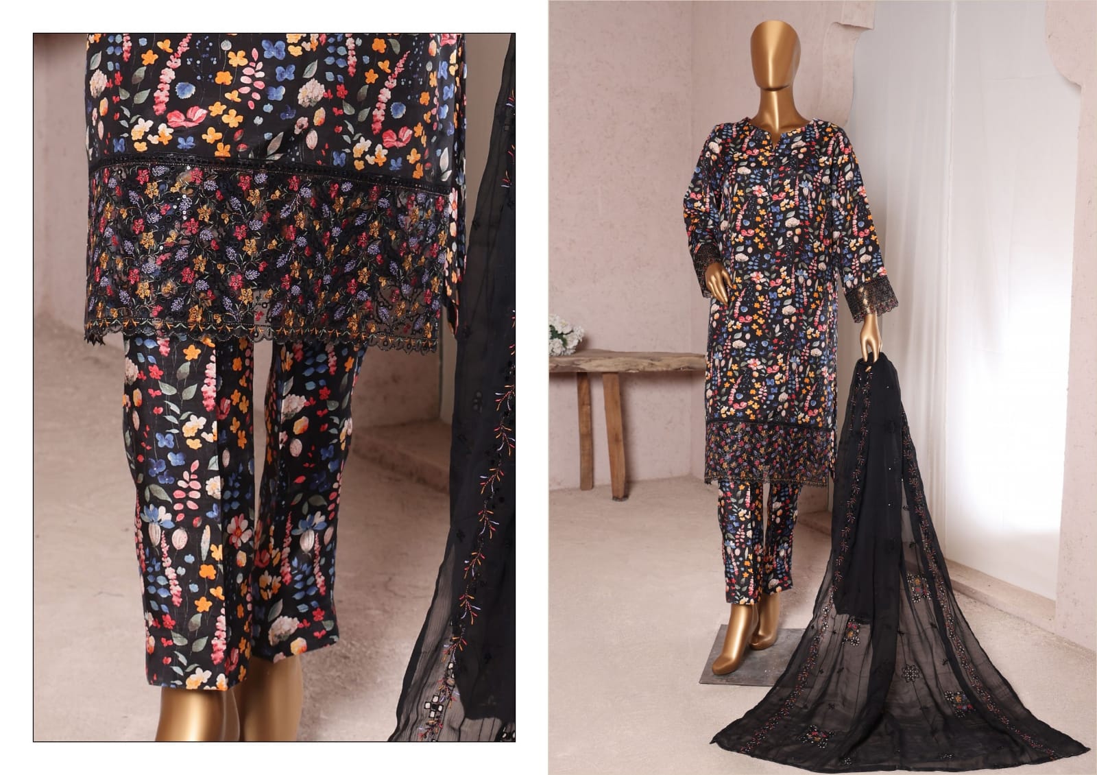 DIGITAL PRINTED RAW SILK EMBROIDERED STROUSER