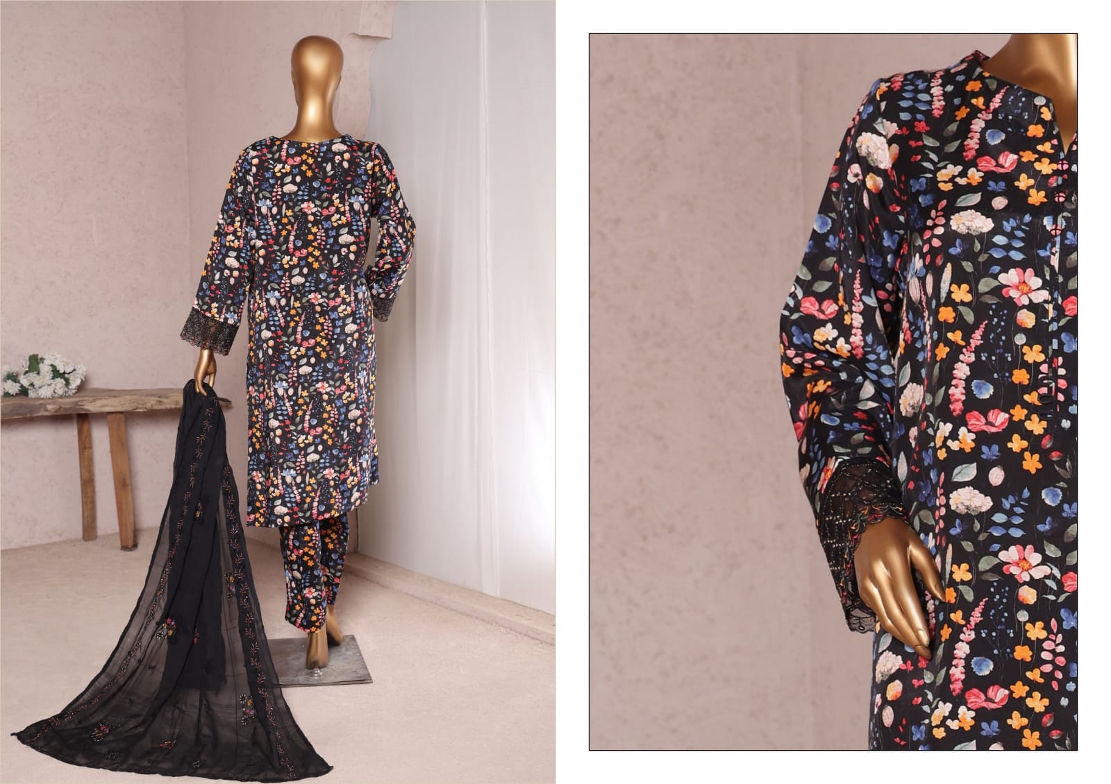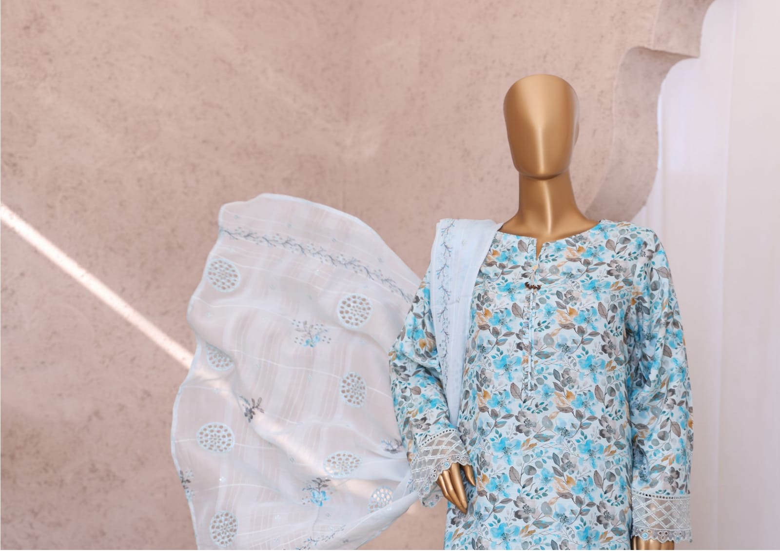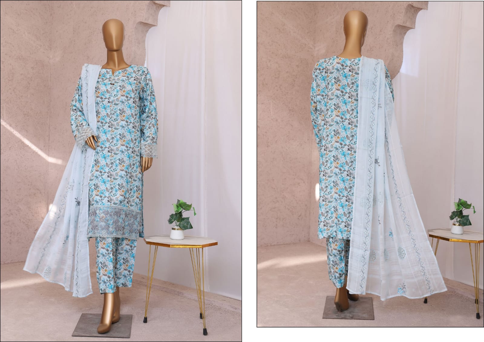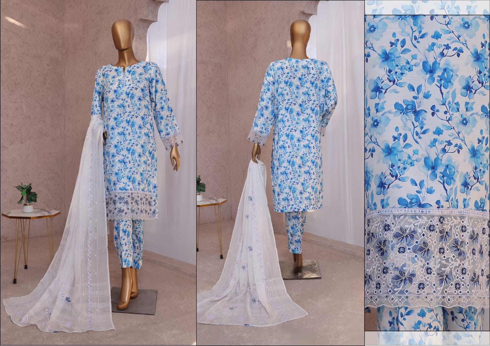 DIGITAL PRINTED RAW SILK EMBROIDERED STROUSER