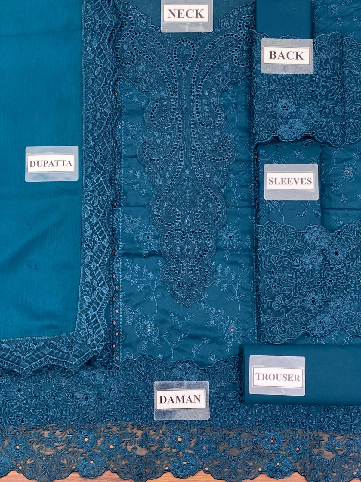*DUPATTA* Chiffon with 4 Side Embroidered cutwork lace attached