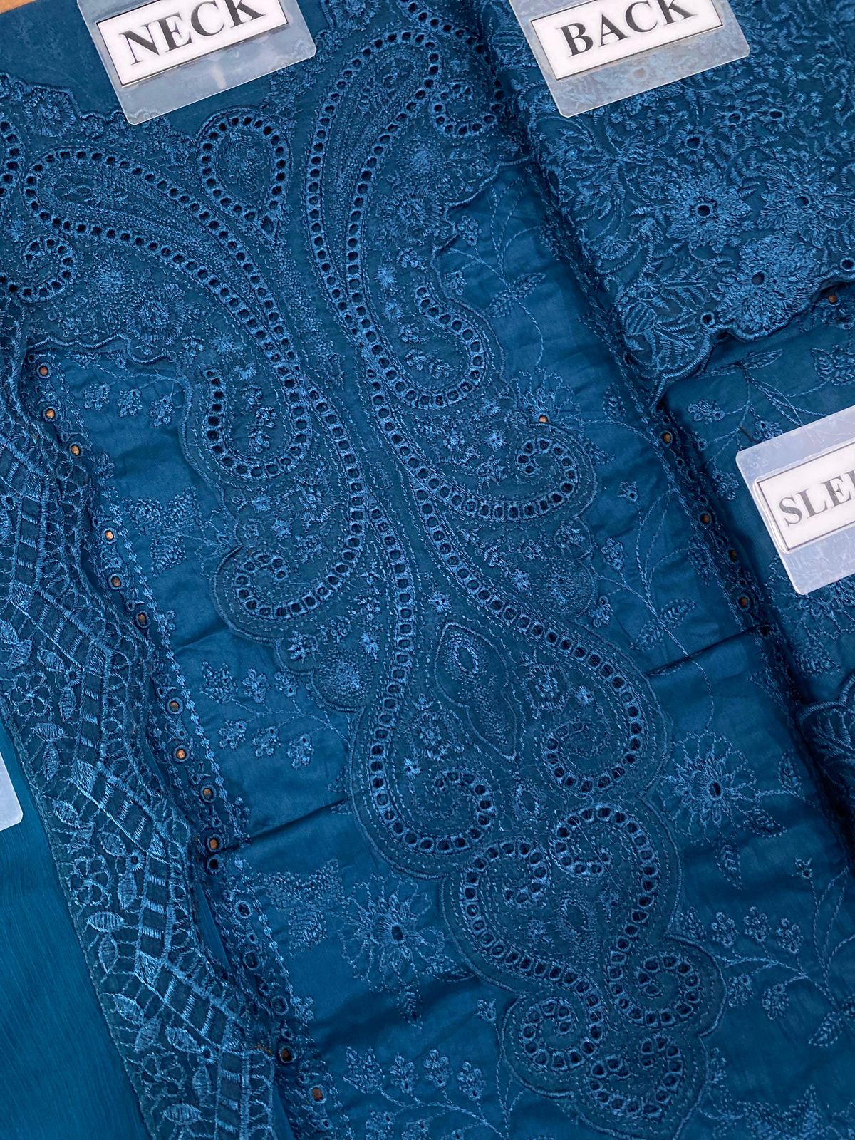 *SLEEVES* Lawn Embroidered chiken kari work with Embroidered cuff patch