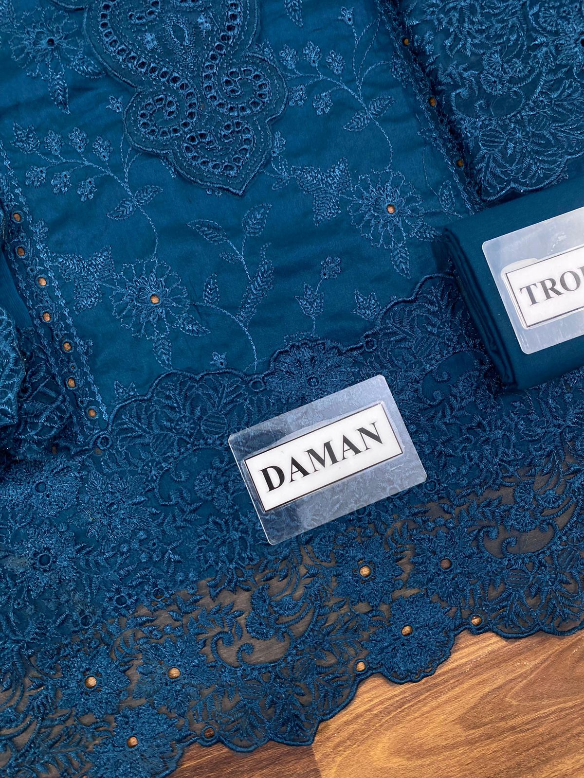 *FRONT* Lawn with Thread Embroidered chiken Kari Work Neck Patch Embroidered chiken Kari & Daman Patch Embroidered