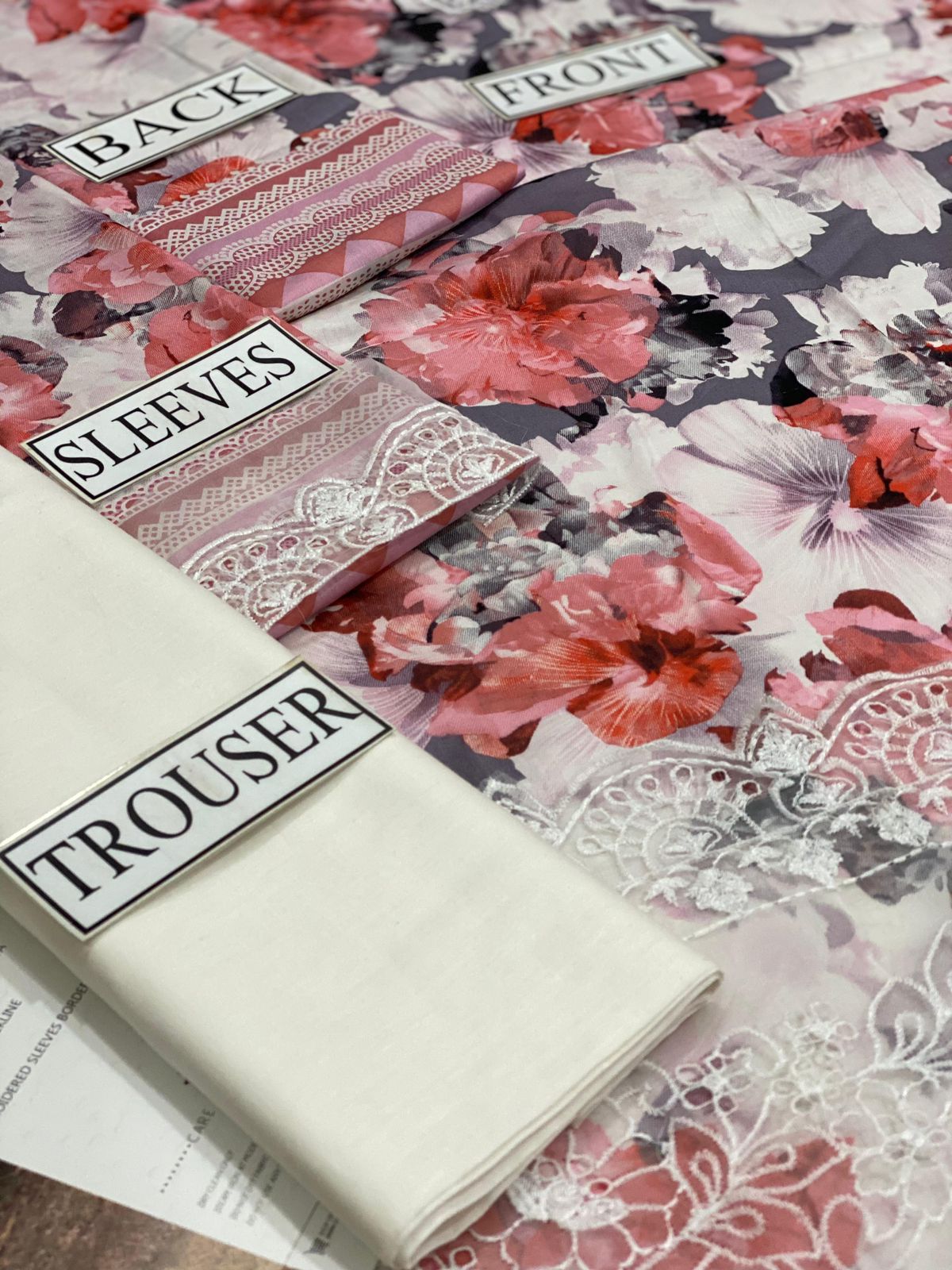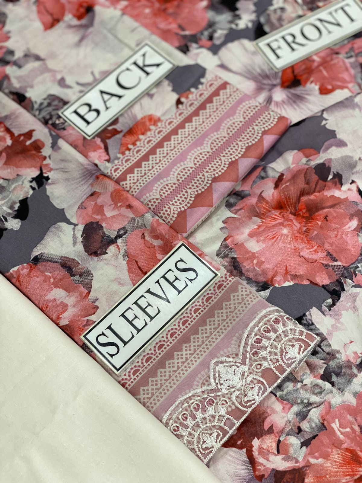 *Printed lawn front with fully heavy embroidered spengle neckline*