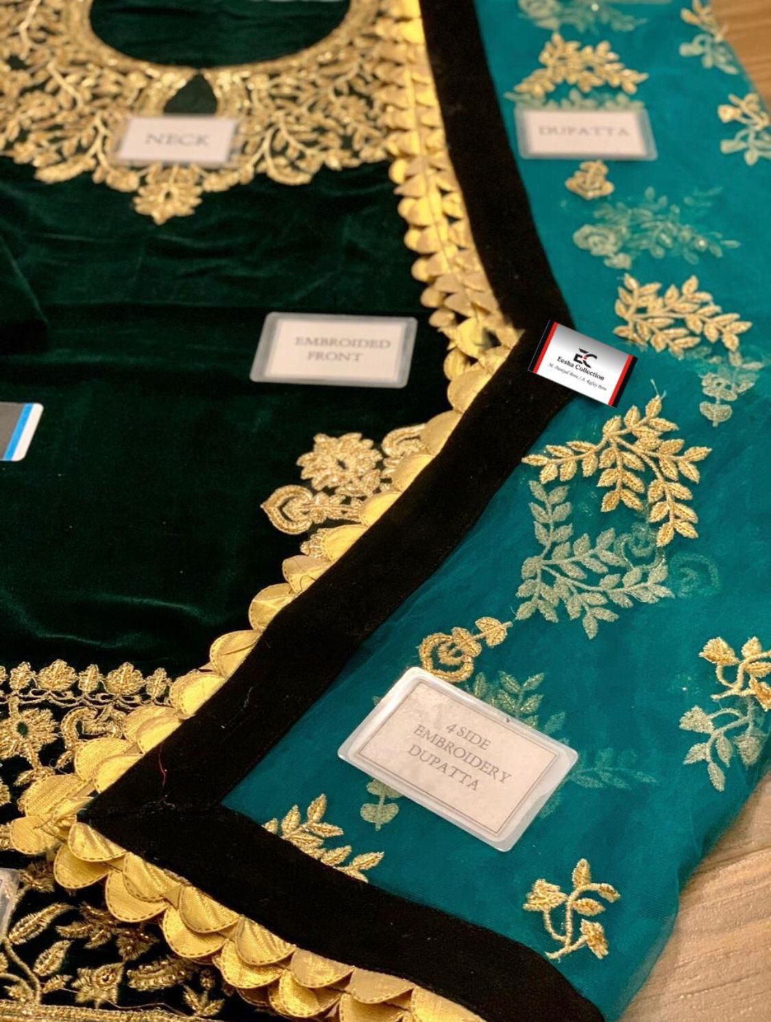 Velvet Fully Heavy Embroidered Spengle Work Front With Heavy Embroidered Spengle Work Daman Lace & Chak Lace With Heavy Embroidered Spengle Work Neck & Daman Bunches