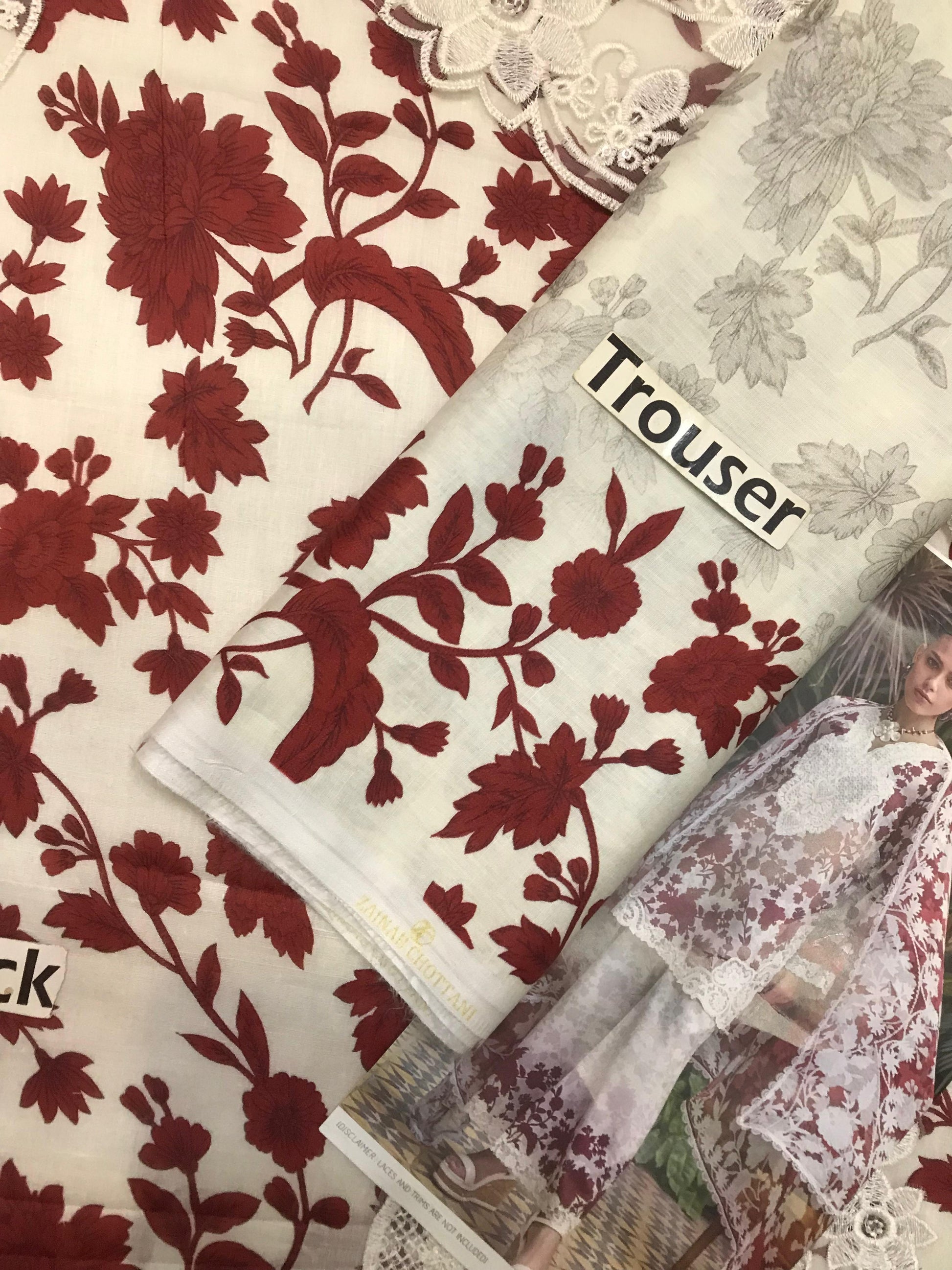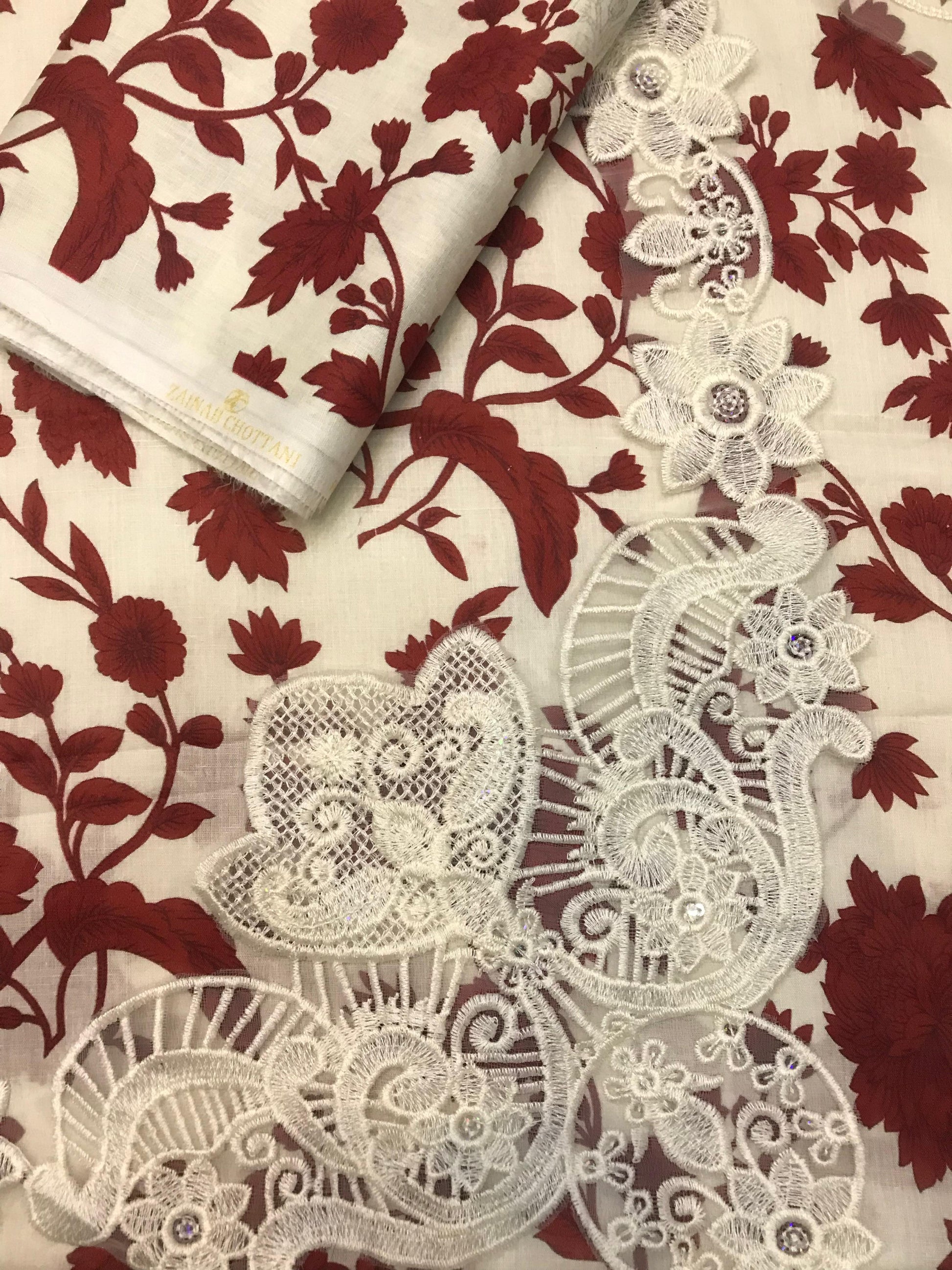 PRINTED LAWN SLEEVES WITH HEAVY EMBROIDERED CUFF PATCH