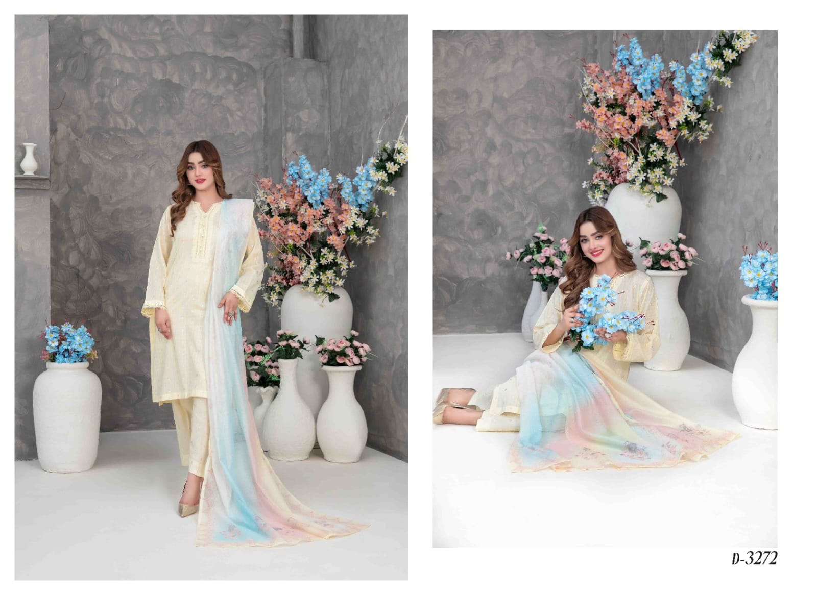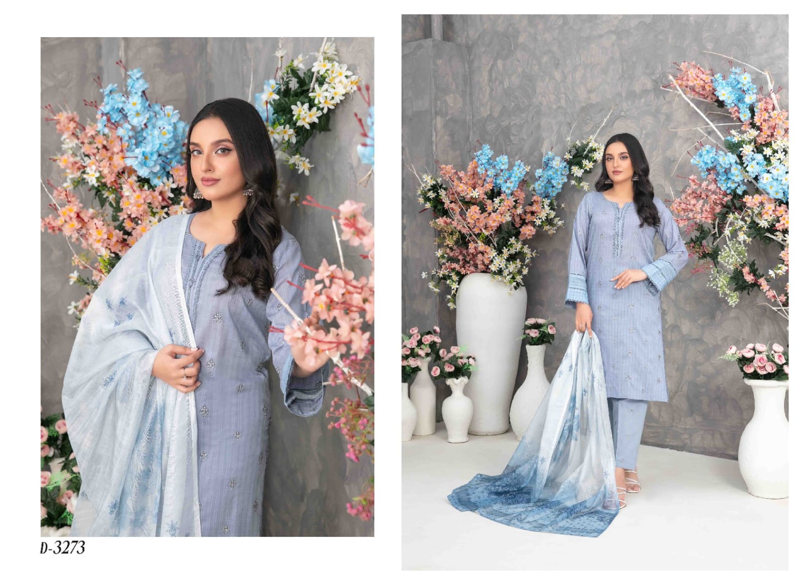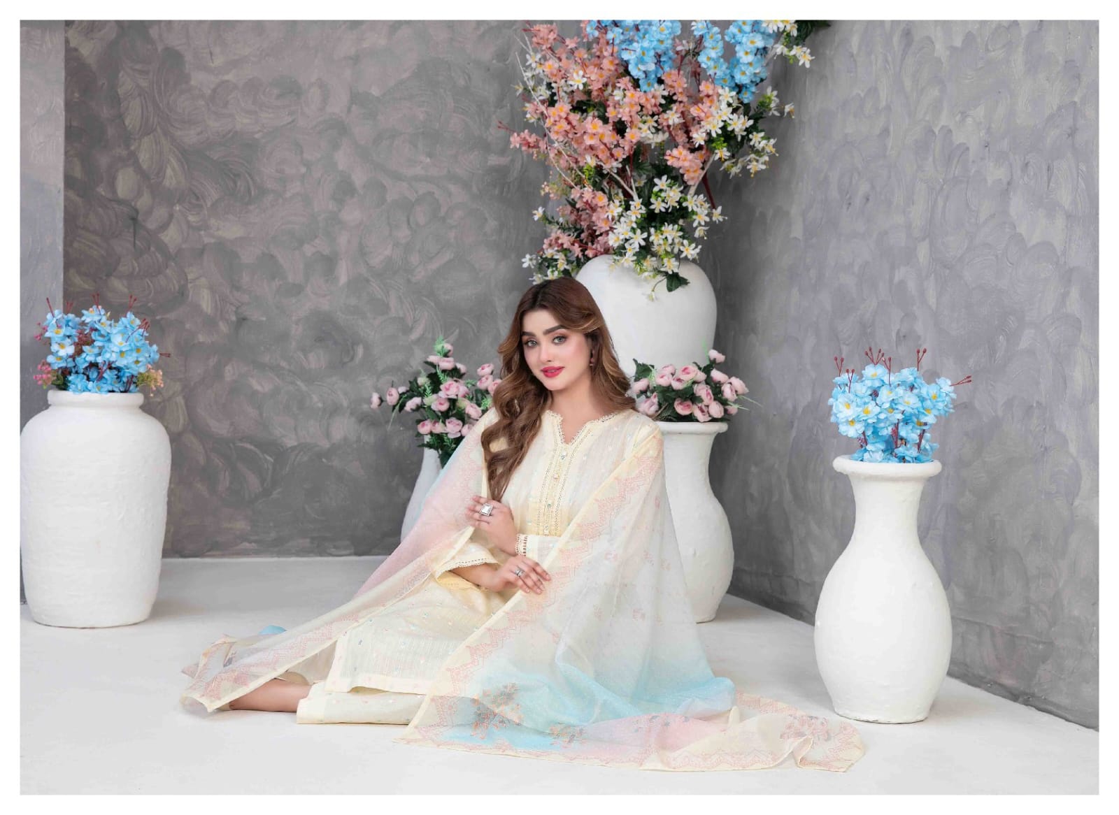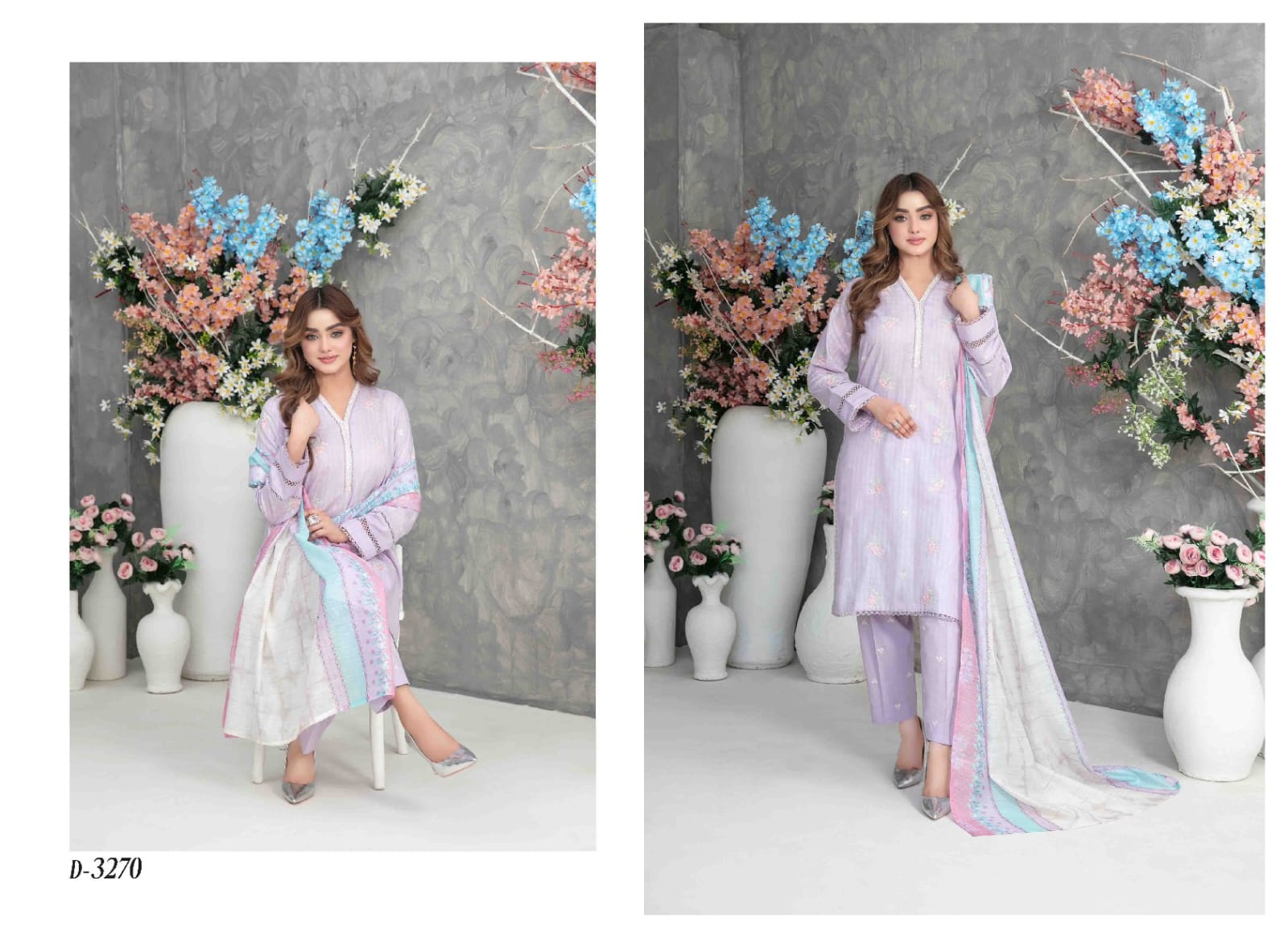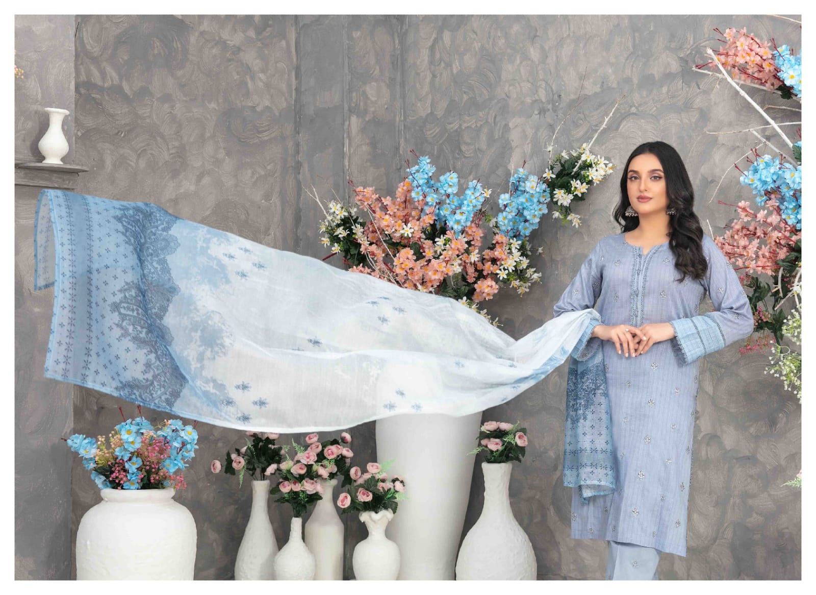Stitched Embroidered Slub Lawn Shirt Design's with Embellishments with Digital Printed Dupatta & Stitched Embroidered Cotton Trouser