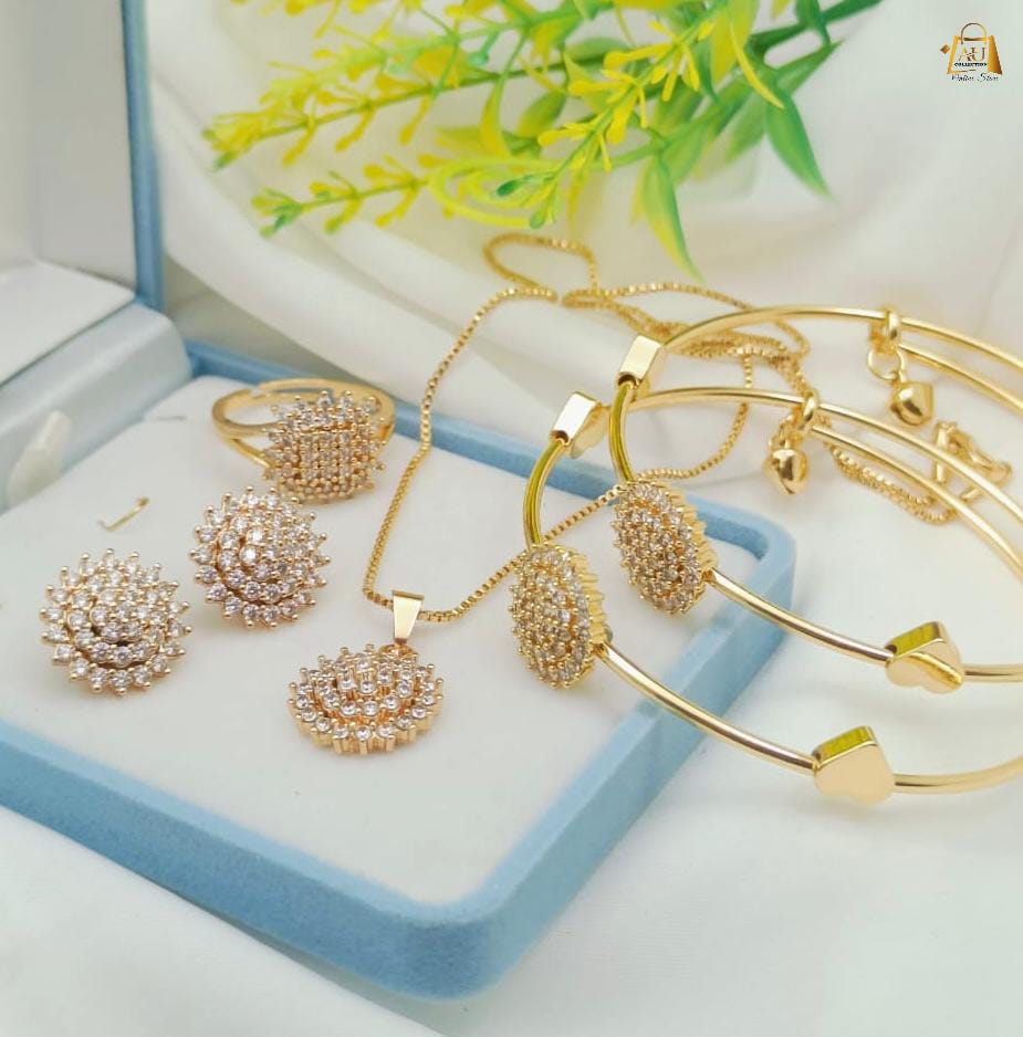 Zircon locket set + adjustable size pair bangles + ring đź’Ť